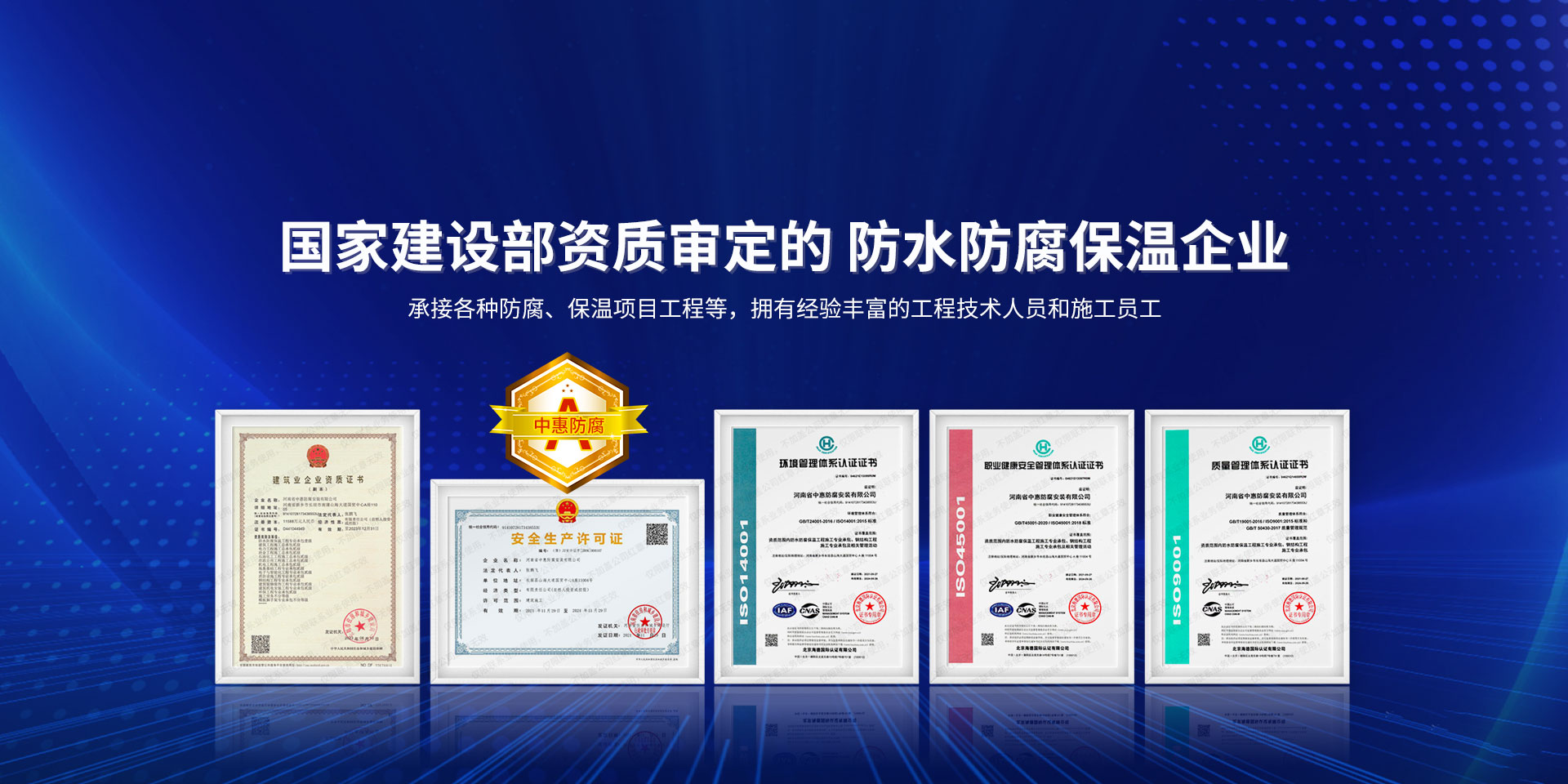 公司經營范圍:防水防腐保溫工程;消防設施工程;建筑裝修裝飾工程;建筑機電安裝工程;電力工程;建筑工程;石油化工工程;工業清洗工程;油罐清洗工程;鋼結構工程;環保工程;模板腳手架工程;電纜防火封堵、防污閃噴涂、外墻外保溫工程;各類施工勞務作業;設備維修、船舶鉚焊、涂裝;電力工程材料、建材、防水材料、防火材料、防腐保溫材料銷售,并相繼通過了GB/T19001-2008idtISO9001:2008GB/T50430-2007質量管理體系認證證書。GB/T24001-2004idtISO14001:2004環境管理體系認證證書。GB/T28001-2011idtOHSAS18001:2007職業健康安全管理體系認證證書。公司是中國防腐蝕于防護協會、中國施工企業管理協會、電力協會和中國鋼結構防水協會會員單位。 公司的經營業務涵蓋了石油、化工、電力、冶金、煤炭、船舶、國防、燃氣、水利、環保、交通運輸、航空及國防軍工和輕紡市政等行業的防腐保溫絕熱設備。鋼結構安裝、防火、防水、金屬噴鍍、聚脲噴繪、陰極保護、防滲透堵漏、玻璃鋼及各種磚版材料襯里、橡膠襯里、煙氣硫和耐酸溶劑腐蝕等工程施工。公司連續十年榮獲“省市先進施工企業”“安全生產先進單位”“重合同,守信用企業”和“AA***資質企業”的稱號。2000年被命名為市級文明單位,2002年被國家工商行政管理局命名為“重合同,守信用的企業”、被中國工業防腐蝕技術協會命名為“防腐蝕企業,能源節約及環境保護領域有豐富的經驗和***的業績。工程一次交驗合格率100%。其中攀枝花鋼鐵公司煉鐵廠四號高爐及熱風爐防腐工程、上海寶鋼公司煤氣柜防腐工程、撫順石油一廠裝置防腐項目、齊魯石化公司稀烴廠高塔防腐工程、吉林化學工業公司煉油廠油罐防腐工程、天津石化熱電廠六號爐頂棚聯絡管保溫工程、大慶油田(太倉)力神泵業工程、中國化學工程第十一建設工程、中原油田勘探局工程、中國石化銷售有限公司華北分部、魯皖輸油管道工程、貴州開磷息烽合成氨工程、陜西黃陵煤化工程、中國石油天然氣西部管道塔里木輸油工程、邯鋼集團邯寶鋼鐵公司煉鐵工程、德州供電工程、吉寶(南通)船廠工程,偃師華潤熱力工程、鄭州熱力總公司。 河南省中惠防腐安裝有限公司愿以豐富的施工經驗,***的技術,***的設備,***的管理,***的服務,竭誠為國內外廣大的用戶提供***滿意、******的工程作品。 我公司愿與國內外同仁一道,團結協作,共同推進防腐蝕行業發展! 公司地址:河南省長垣縣建設路北段360號 固定電話:0373-8866488 郵編:453400 網址:http://www_zhff_com_cn.0296662.com